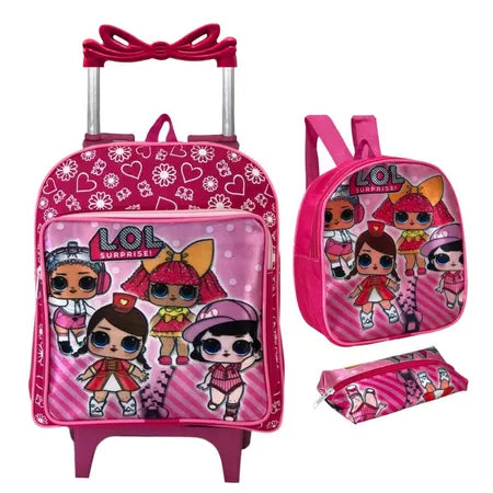 Kit Mochila LOL Infantil Escolar Creche Rodinha Lancheira + Estojo (Até 5 Anos)