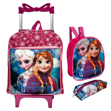 Kit Mochila Frozen Infantil Escolar Creche Rodinha Lancheira + Estojo (Até 5 Anos)