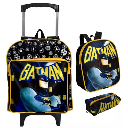 Kit Mochila Batman Infantil Escolar Creche Rodinha Lancheira + Estojo (Até 5 Anos)