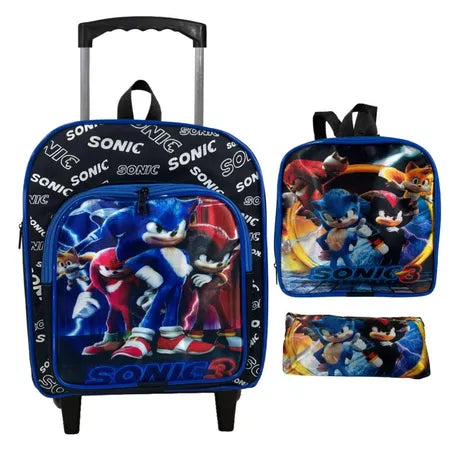 Kit Mochila Sonic Infantil Escolar Creche Rodinha Lancheira + Estojo (Até 5 Anos)